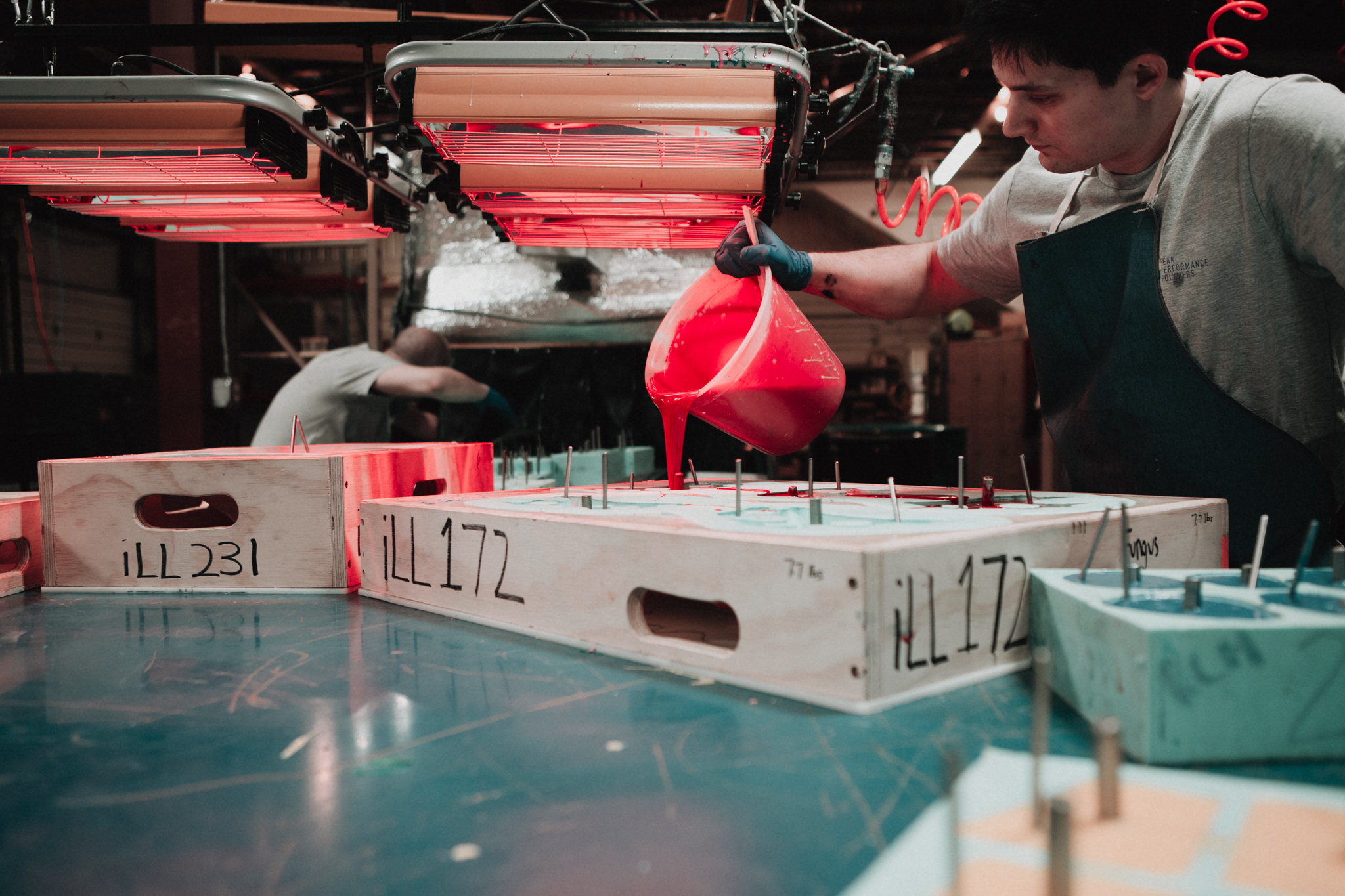 Each day hundreds of products are custom made to order in dozens of industry standard colors. Products are hand inspected and heat-cured.